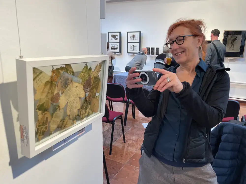 De nem Ő volt az egyetlen, aki meghekkelte a kiállítás kiírását. Németh Kriszta egy komplett őszi kertet adott be egy keretben, ami a mesterséges intelligencia és az éghajlatváltozás témáját boncolgatja sajátos módon.